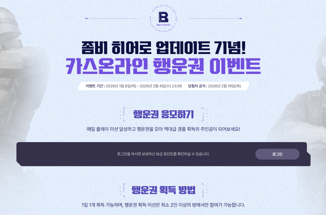 추가로 좀비히어로 업데이트 기념으로 카스온라인 행운권 이벤트까지 진행되고 있다고 합니다!!!!! >ㅇ< !!!!