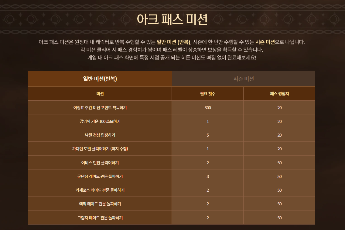 마지막으로 아크 패스 미션 내용 간단하게 보여드릴게요~~~